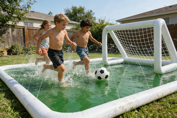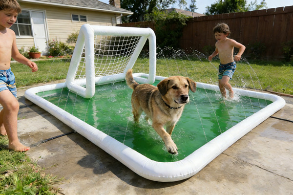 This 3-in-1 Soccer Splash Pad combines water spray play, soccer shooting, and active movement in one setup—so kids burn energy, pets cool off, and families enjoy real outdoor fun together.