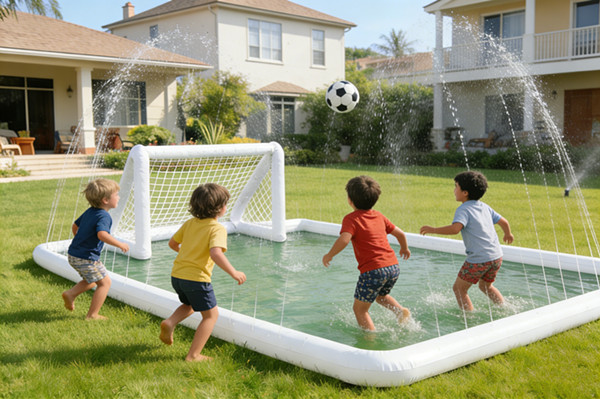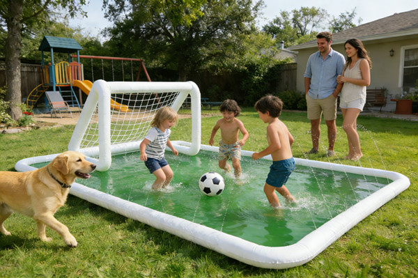This 3-in-1 Soccer Splash Pad is designed to support the way families actually use outdoor products in summer: kids want movement and variety, parents want a safer and more organized play setup, and pets need a cool, open space where they can stay included instead of being left out.