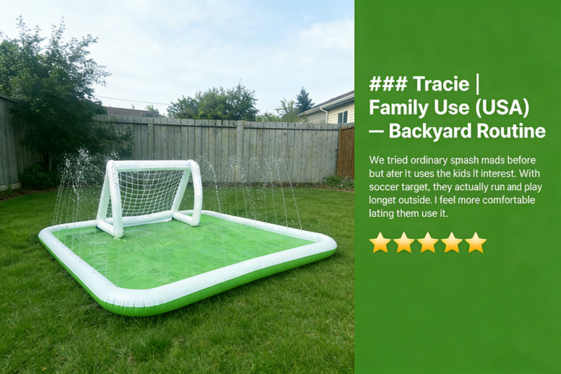 “We tried ordinary splash pads before, but after a few uses the kids lost interest. With the soccer target, they actually run and play longer outside. I feel more comfortable letting them use it.”