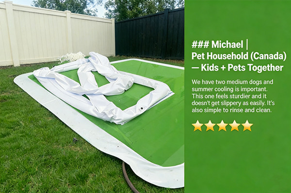 For households with dogs, summer water play often works better when pets do not need a separate setup. A shared splash pad makes it easier for the whole family to stay in the same space while keeping play relaxed and practical.