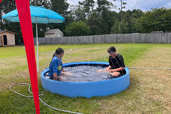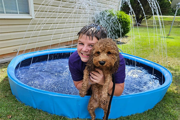 Now that the pool is set up and the sprinkler is spraying water, it’s time to enjoy the fun! Let your pets cool off and your kids play in the refreshing water, all while having a blast in the backyard.