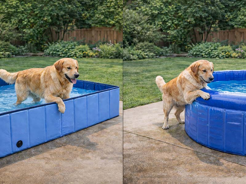 Dog size affects every aspect of pool performance. Larger dogs apply more pressure to edges during entry and exit, increasing the risk of collapse in inflatable or thin-walled pools. As a general rule, dogs over 60 lbs (27 kg) benefit most from non-inflatable pools with reinforced walls and wider footprints. Smaller dogs can tolerate lighter designs, but stability is still preferred for repeat use.