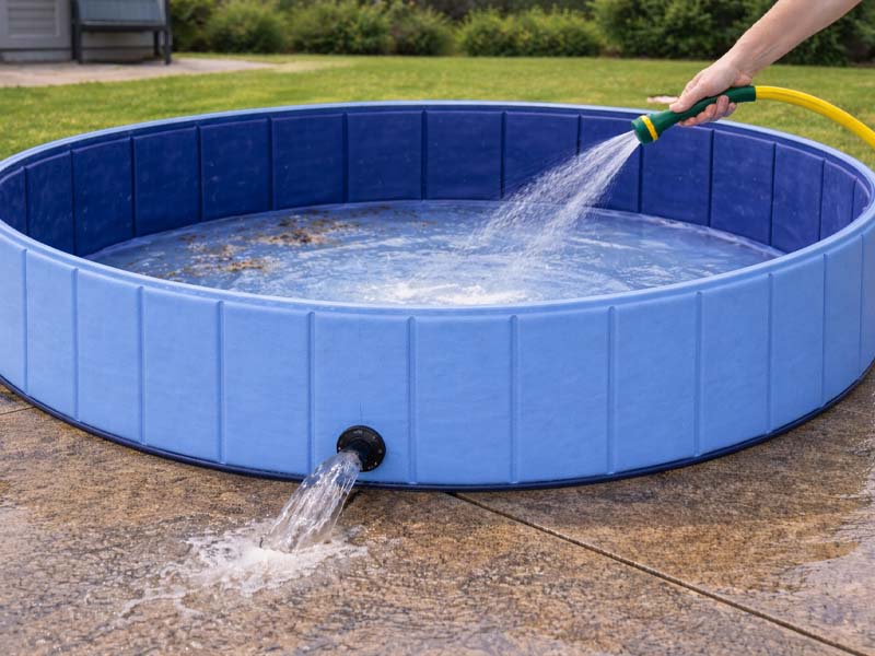 Dog pools should be rinsed after use to remove dirt, hair, or soap residue. Pools with smooth, non-absorbent surfaces are easiest to clean and dry. Regular draining and quick rinsing help prevent odors and extend the pool’s usable life.