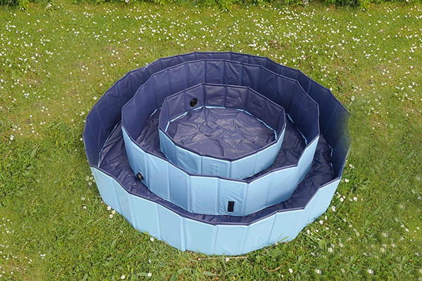 - These pools can be easily carried from place to place. Whether you’re moving it to a different spot in your backyard or bringing it on a camping trip, foldable dog pools are lightweight and easy to carry. Their ability to fold down to a compact size means you can easily fit them in the trunk of your car.