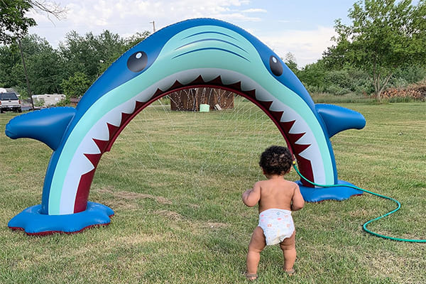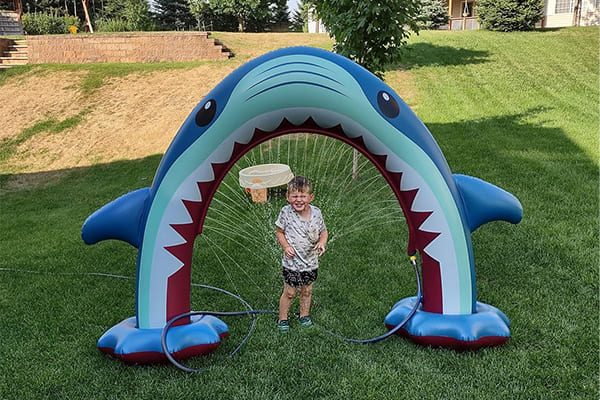 Inflating the kids sprinkler takes just a few minutes. Simply inflate the top and base, and you’re ready to enjoy the fun!