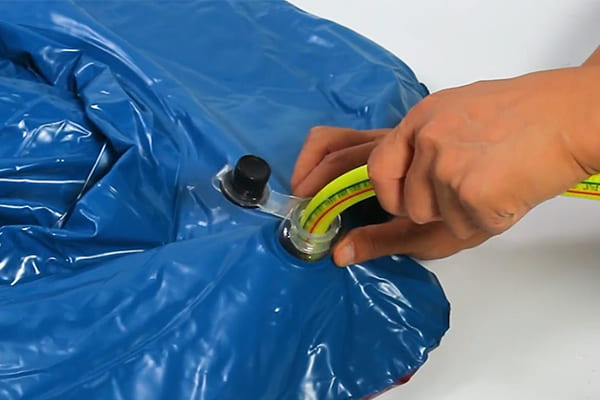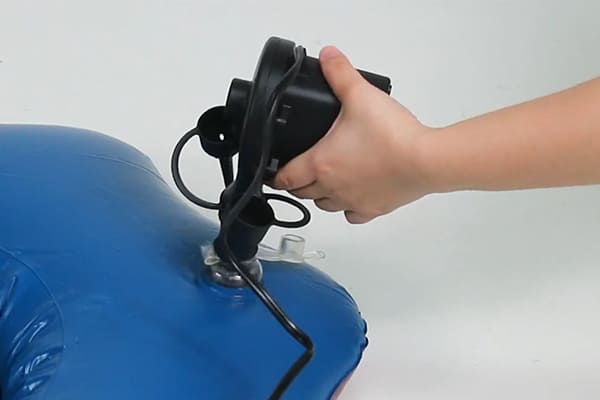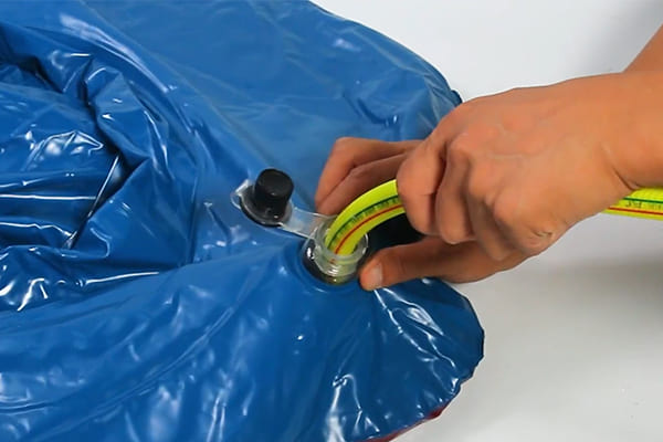 Using a pump nozzle, inflate the remaining 20% of the base. This will give the sprinkler its full shape and provide additional stability for active play.