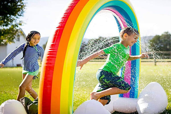 Setup and storage of the sprinkler for kids is incredibly easy and convenient. It inflates in minutes, letting your kids jump right into play without waiting. Once the fun is over, the sprinkler deflates quickly and folds compactly, making it perfect for storage or taking it on the go. Whether it’s for a backyard playdate or a picnic in the park, you can quickly pack it up and go.