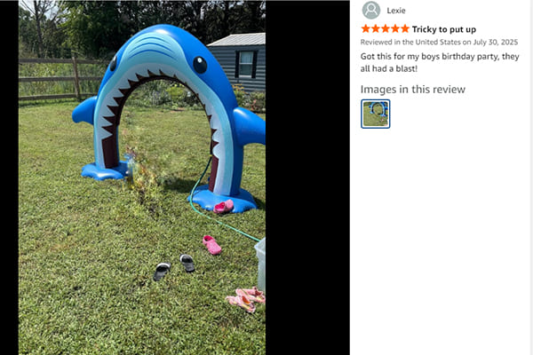 See the fun come to life with our kids sprinkler in the video below! Watch how easily it sets up and how the water flows smoothly from the arch, creating a safe and exciting play environment for children. The video demonstrates how kids can run, jump, and enjoy hours of water fun in the backyard or at a party.