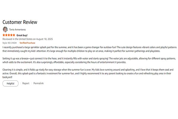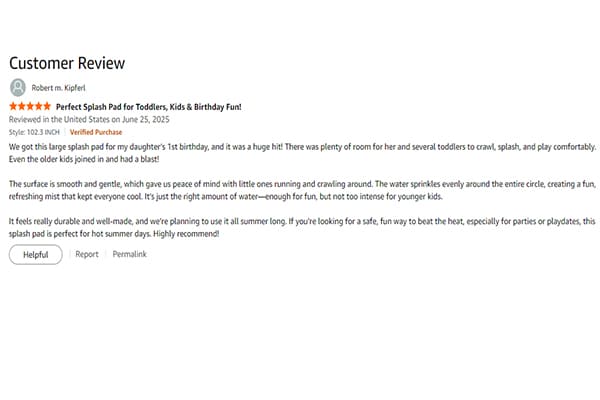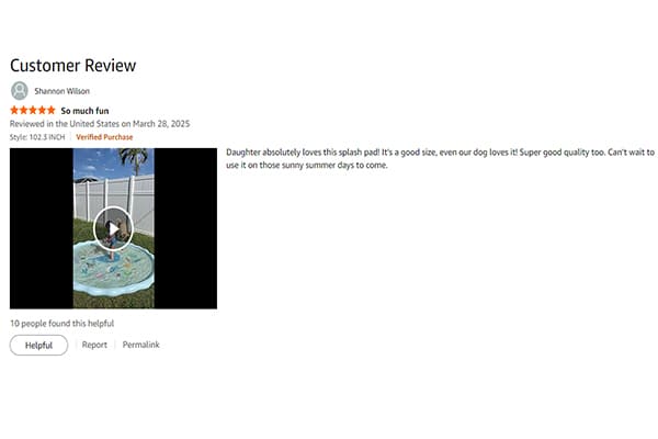 Our splash pad has been a game-changer for families and pets worldwide. But don’t just take our word for it — here’s what some of our happy customers have to say about their experience.