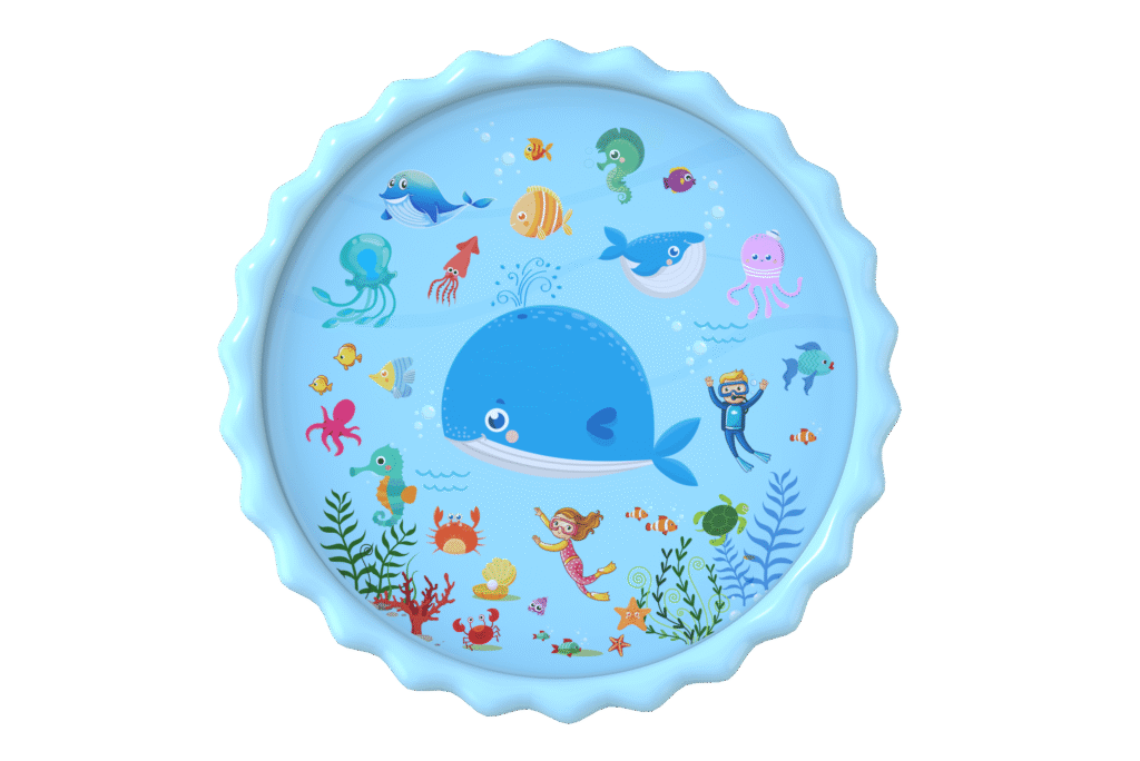 The splash pad comes with bright, colorful graphics featuring animals, alphabets, and ocean themes. These educational designs not only make water play fun but also engage children in learning while they splash around. It’s a great way to promote sensory development and enhance motor skills through play.